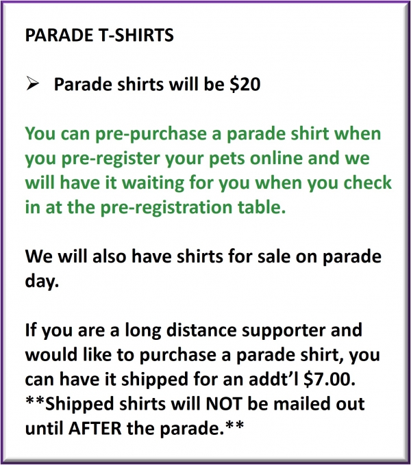 ⚜️ Purchase a parade shirt to be picked up at registration when you check in (using Paypal or credit card).